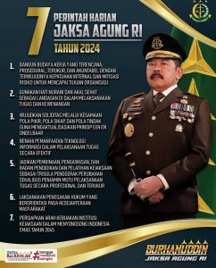 Jaksa Agung menyampaikan 7 (tujuh) Perintah Harian untuk dihayati dan dilaksanakan sebagai pedoman dalam pelaksanaan tugas kepada seluruh jajaran Kejaksaan yakni sebagai berikut: